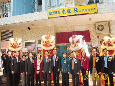 黃大仙區議員袁國強辦事處昨舉行開幕儀式,出席支持的嘉賓眾多,包括中聯辦九龍工作部副部長容福華、民建聯副主席葉國謙、立法會議員陳鑑林、黃國健、工聯會副會長陳婉嫻、黃大仙區議會主席李德康、民建聯黃大仙支部主席簡志豪等。圖為眾嘉賓在袁國強辦事處前合照留念。