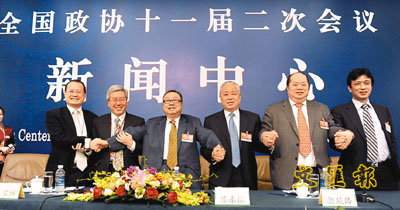 ■政協的真知灼見獲重視,6位港澳委員出席「港澳委員談如何應對全球金融危機」的記者會。 資料圖片