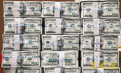 ■美國政府不斷以新債養舊債,增加貨幣供應,美元資產實質購買力勢將大為貶值。圖為堆積如山的美元鈔票。 路透社