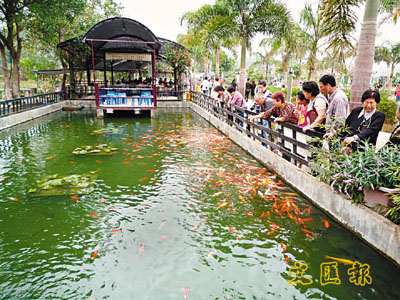 錦鯉魚池養滿了極具觀賞價值的錦鯉魚,而且可供遊客餵飼。