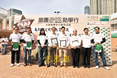 【本報訊】大型步行籌款活動「苗圃512助學行」本月15日早上假九龍公園露天廣場揭開序幕,512位曾參與苗圃步行活動的市民出席啟動禮。苗圃行動在本年5月至2010年5月的一年內籌辦8次獨立步行籌款活動,目標為四川、甘肅地震受災學童籌集1,500萬港元善款,專門用於重建災區學校及有關教育設施。