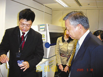¡@¡½«O¦w§½§½ªø§õ¤Ö¥ú¡]¥k¡^¬Q¤é¨ì·s¥[©Y¤¤¥¡µÂ¬r§½°ÑÆ[¡A¨ÃÆ[¬Ý¤u§@¤Hû¶i¦æ§¿²G¬r«~´ú¸Õ¡C