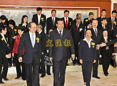 【本報訊】中共中央政治局常委、全國政協主席賈慶林,中央軍委副主席徐才厚,昨日在北京會見了以全國政協副主席董建華夫人董趙洪娉為團長的香港群力資源中心訪京團一行。賈慶林在會面中強調,祖國內地永遠是香港的堅強後盾,相信在中央政府的支持下,在特區政府帶領下,通過廣大香港同胞的共同努力,一定能夠繼續保持香港繁榮穩定、和諧發展的局面。