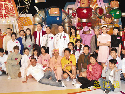 ■《博愛無敵獎門人》認真「玩洁v,昨日眾藝人分別扮成救護員、護士、病人等角色。