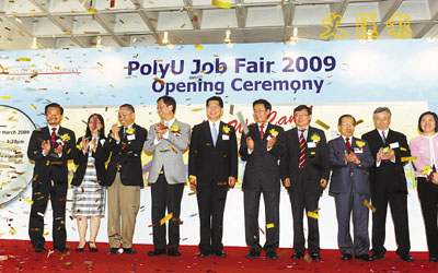 理大學生事務總監馮陳敏慈女士補充指,因調查截至去年12月底,未能全面反映金融海嘯後學生的就業情況,其中學生月薪比現時實況會有偏高,預料未來大學生就業狀況將會隨市場再作變動。而理大昨日亦於校內舉行為期2日的職業展,邀請到68間私人企業、政府部門及專業團體參加,較去年約40間為多。各機構共提供約500個職位空缺,及數十個實習機會。理大校長唐偉章表示,今年已特別加強輔導學生就業功夫,希望加強其就職能力。