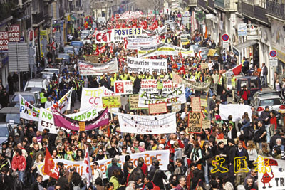 1月29日的100萬人全國大罷工後,薩科齊宣布總值26.5億歐元(約280億港元)社會福利措施,但當局已拒絕推出更多援助。為平息民怨,他日前要求法國最大僱主協會MEDEF削減裁員企業高層的薪酬,惟MEDEF主席拒絕,令示威者更加不滿。 ■綜合外電消息/路透社
