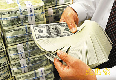 ■美國聯邦政府的債務已經超過10萬億美元,攤到每個老百姓頭上,人均接近4萬美元。圖為銀行職員手持大量美元鈔票。 法新社