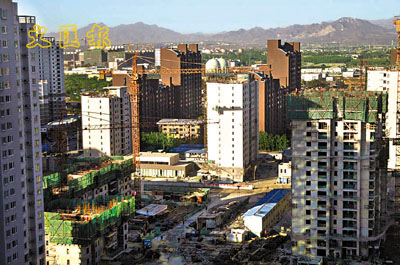 ■面對全球金融危機影響,但北京的樓價跌幅並不大。圖為京城四環五環之間的幾個房地產項目正在如火如荼的建設中。 中新社