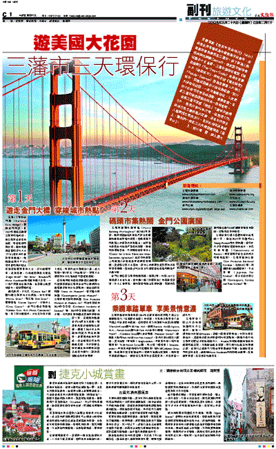 美國電影《夏菲米克的時代》(Milk)的男主角辛潘成為今屆奧斯卡的影帝,而電影故事背景就在三藩市。除了有為人熟悉的同性戀區Castro外,原來該市對環境保護亦十分著重。三藩市獲環保雜誌《綠色指南》(The Green Guide)列為全美國十大「綠色城市」,同時亦被《普及科學》(Popular Science)譽為美國第二大綠化城市,就連旅遊業亦以環保為噱頭,實行大搞環保旅遊,一來可宣傳環保,二來更可以此吸引世界各地遊客,推動經濟。且看三藩市綠色遊能否給你一點啟發吧。