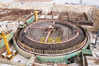 ■中央增加基建投入,有助減低紓緩通縮壓力。圖為國家4萬億經濟刺激方案中的重點能源基礎建設項目之一、福建福清核電站去年11月底開工建設。