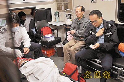 ■一名妙齡女,疑打傷父親後畏罪從商場3樓躍下自殺,由父親陪同送院搶救後,情況危殆。
