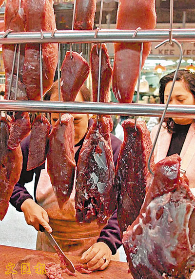 ■食安中心2月抽樣的鮮牛肉樣本中,又有8個含有防腐劑二氧化硫。圖為某牛肉檔。 資料圖片