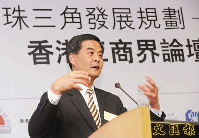 【本報訊】(記者 郭曉樂)珠三角《綱要》自發表後,粵港澳的合作全速推進。針對粵港澳合作不時出現「粵快港慢」,行政會議召集人梁振英出席「珠三角發展規劃-香港工商界論壇」時建議,特區政府應該擴大目前的編制,同時調整兩地政策框架,包括徹底摒棄「積極不干預」的經濟教條,與粵澳雙方政府共同商討落實《綱要》的細節內容︰「今天的編制一定不可能在12年內完成(《綱要》的目標)。」