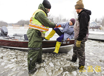 美國國土安全部長納波利塔諾表示,準備在本周內為3萬名災民提供食宿援助,包括17萬份餐盒、3萬張帆布床,以及25萬公升食水等。他又指,華府已作最壞打算,必要時會從災區撤走多達10萬人。加拿大,紅河流經的溫尼伯,也有數十間房屋被洪水淹浸。■法新社/美聯社/路透社