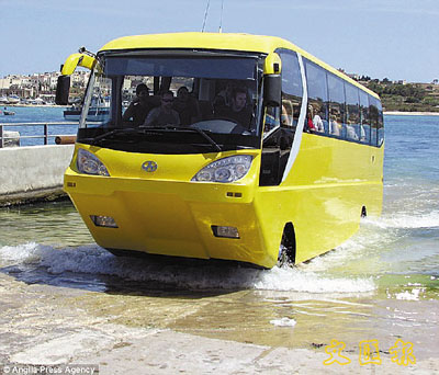 經過6年的研究發展,英國一間公司開始在貝爾法斯特和布達佩斯銷售水陸兩用的AmphiCoach巴士。該種擁有50個座位的巴士與普通巴士一樣能以時速70英里在陸上行駛。當遇到水路時,只需輕按開關,巴士的輪子就會縮進車身,空氣活門便會推動巴士,巴士便能在水中航行,並且淡水和海水均適用。不過這種巴士並不便宜,一輛售價就要28萬英鎊(約310.6萬港元)。 《每日郵報》