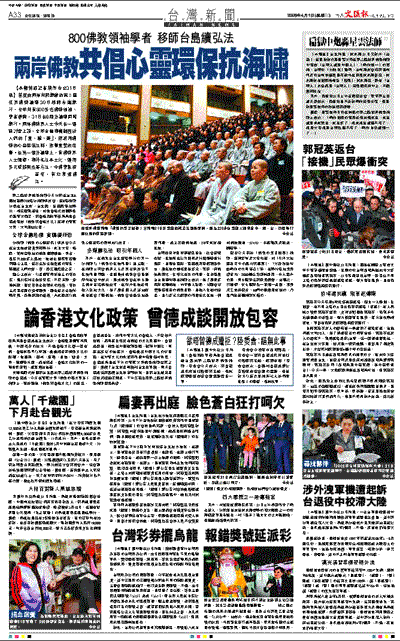 記者今天採訪「佛教的慈善關懷」論壇,演講多涉及大陸內容,如「汶川大地震救災中的思考與建言」、「大愛作為海峽兩岸的共同基石」等。在舉行場地慈濟禮堂內,2000個位置座無虛席。令人意外的是,男士聽眾全部深色西裝、白襯衣、打領帶,女士聽眾也一律統一著裝。慈濟義工告訴記者,他們的服裝是定做的,乃專門為這個論壇準備的。