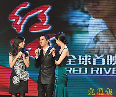 《紅河》的導演章家瑞、主演張家輝、張靜初和李麗珍日前在昆明舉行全球首映新聞發佈會,現場放映了18分鐘的片花,盡顯了電影的悲情味,張家輝、張靜初扮演的一對不幸情人命運更令人惋惜。對於戲中張靜初裸背演出,導演章家瑞稱他在20多個越南姑娘中挑選了一位裸替,張靜初被追問為何不願為藝術犧牲?她笑說:「這樣的話你們會對此太感興趣了,注意力轉移了。」