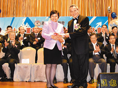 商務及經濟發展局局長劉吳惠蘭頒發委任狀予該會新任會長李子良。
