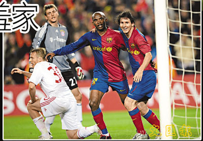 拜仁雙中堅盧斯奧與雲拜頓分別因傷與父親中風而缺陣,令原已守力不穩的防線更加千瘡百孔,加上射手高路斯倦勤,列貝利與東尼在前線也顯得獨力難支。適逢巴塞態勇,一條中場線與「三叉戟」美斯、亨利和伊度奧更踢出水銀瀉地的細膩足球。9分鐘,亨利、沙維與伊度奧禁區邊接連橫傳並由美斯射入,後者3分鐘後直傳伊度奧射成2:0。亨利在38分鐘用速度左路突破傳給美斯鏟射中鵠後,自己也射入個人歐聯的第50球。本球季至今,「三叉戟」合作的入球總數已達85個,令人咋舌。拜仁是役發揮不出日耳曼的精神戰意,若非巴塞下半場手下留情,相信還可輸得更慘。