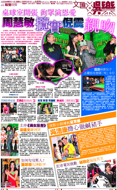 倪震公開多謝太太時,即引來現場起哄,要他「錫」太太,最初兩人只管甜笑,經記者再三要求,倪震便吻向太太的臉龐,其後記者再要求「重演」,周慧敏便主動攬著老公,以示回敬,表現恩愛。