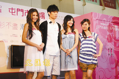 ■周秀娜(左起)、周柏豪、羅凱珊、梁嘉琪一起為屯門市廣場時裝騷任模特兒。