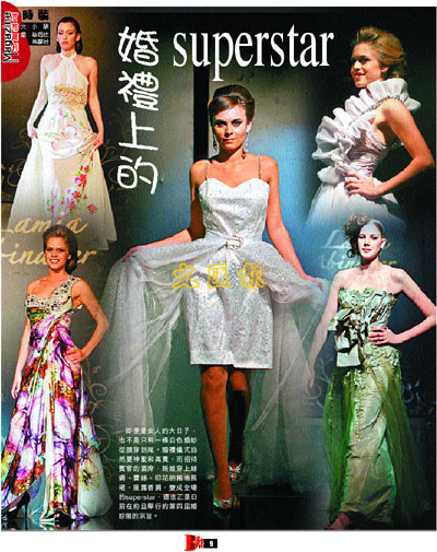 即便是女人的大日子,也不是只有一條白色婚紗從頭穿到尾。婚禮儀式自然要神聖和高貴,而招待賓客的酒席,新娘穿上絲綢、蕾絲、印花的拖地長裙,展露香肩,變成全場的superstar,這也正是日前在約旦舉行的第四屆婚紗展的宗旨。