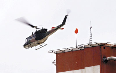 ■直升機疏散在酒店會場出席東盟會議的 領導人。 美聯社