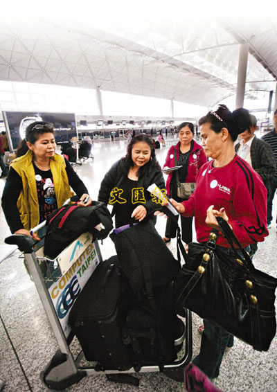 ■在港居住已20年的泰國人阿萍(左一)表示,不擔心前往泰國的安全問題,但對於國家出現政局混亂,感到不高興及難過。 本報記者曾慶威 攝