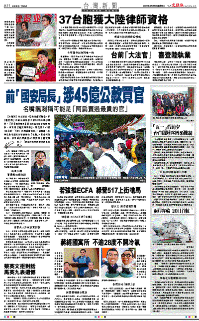 此外,接連軍中弊案重創台灣軍隊形象,就連「將軍夫人」也成為不肖人士收買的對象,某位將軍夫人就對監察委員透露,「現在很多夫人都很敢」。而台灣監察院10日將數件軍方弊案併案調查。