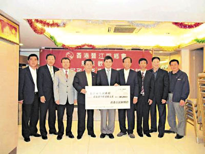 【本報訊】香港晉江同鄉會日前在會所熱烈歡迎晉江市市長李建輝一行。這是李建輝上任後,首次率團訪港,抵港後隨即造訪晉江同鄉會與鄉親見面。晉江同鄉會捐贈25萬港元予汶川災區興建希望小學。