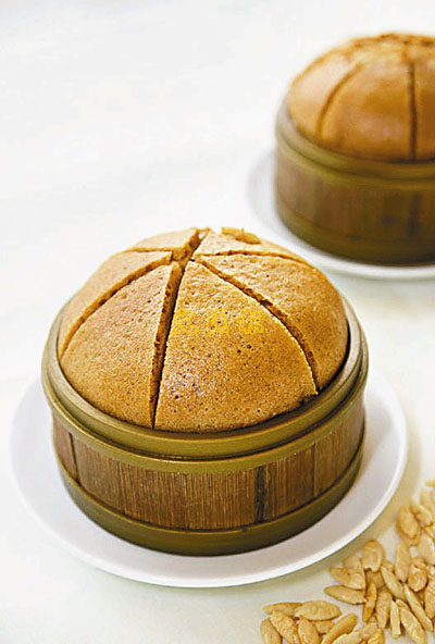 原個蒸籠上桌的欖仁馬拉糕,香滑鬆軟,更可原籠外賣帶走。 $48(b)