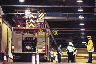 當時長沙灣消防局的升降台消防車,由姓歐陽(45歲)車長駕駛,在接獲指派到達後,沿屋苑停車場入口斜路,準備開往平台協助張開救生氣墊。