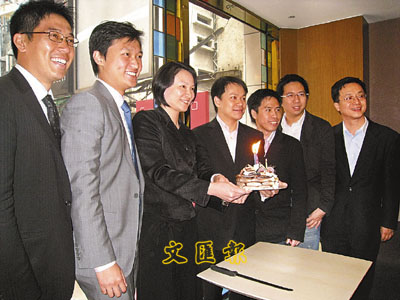 ■陳克勤、李慧k擔任議員後首次過「牛一」,其助理及多名副發言人特別為兩人舉行生日會,並送上雪糕蛋糕。 本報記者 攝
