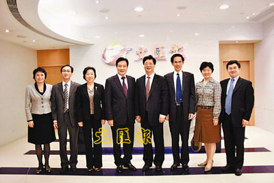 中聯辦九龍工作部林武部長(左四)、容福華副部長(右三)等一行4人昨訪本報,受到本報董事長、社長王樹成(右四),董事、副社長韓力(左三)等領導的熱情接待。雙方就加強九龍工作部與文匯報間的合作交換意見,並達成許多共識。