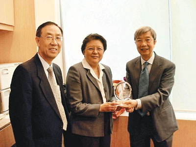 席間並由創會會長王國強工程師致送水晶紀念座予范徐麗泰博士,以表敬意。