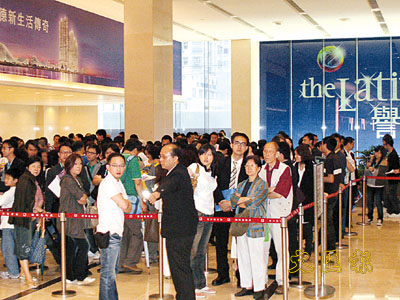 ■雖然天公不作美,但譽.港灣位於觀塘創紀之城6期的示範單位現場場面墟R。本報記者周穎 攝