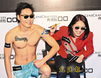 【本報訊】(記者 李思穎)楊千嬅成為某眼鏡連鎖店的代言人,昨日她出席活動時受到廣告商的「厚待」,特地為她挑選一位貌似其緋聞男友丁子高的半裸男模現身,頓時把千嬅嚇得手足無措,狀甚尷尬,不過千嬅相當識做,既然是受人「俸祿」,也不介意娛樂大家。