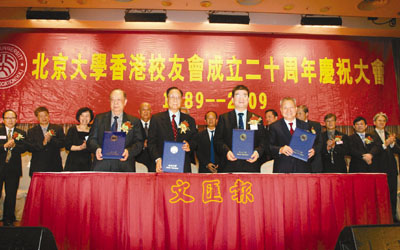 北大香港校友會一直秉承「社會進步 人人有責」的精神,關懷內地教育事業,多年來積極在內地開展扶貧助學的工作。香港校友從1998年捐建第一個助學基金、至2001年香港校友會成立助學委員會,再發展到2006年正式註冊成立香港北大助學基金會,據悉至今已募得捐款一千餘萬元,建小學校舍19所,援助貧困大中小學生約6,000名。香港道德會承諾,今後每年捐款助學300餘萬元(當中捐助母校250萬元)。