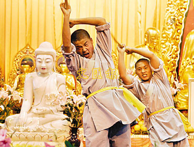 ■去年的寶蓮禪寺浴佛典禮中嵩山少林武僧表演。