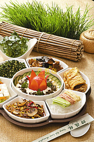 除了寺院的齋菜外,香港也有很多品嚐素菜的食肆,當中功德林可算是較為人知的上海素菜館,少油美味,名菜如金碧輝煌大拼盤、豆腐餃子、上海冷麵、咕嚕肉等,其中的金碧輝煌大拼盤($358),將上海七大著名前菜共冶一爐,讓你一次過品嚐各具特色的前菜,拼盤菜式包括雞絲粉皮、翡翠涼拌、素鵝、烤夫、香椿豆腐、香辣大豆芽及脆鱔。