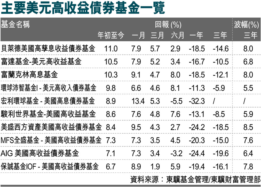 主要美元高收益債券基金一覽 (2009-04-22) (圖)