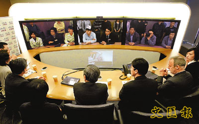 香港思科系統公司捐出3億港元賑災,部分款項贊助本港志願組織設置「網真會議」系統連結四川省人民醫院,遙距為災民診症及作心理治療。昨日該公司即場示範「網真會議」操作,為身處四川的傷殘人士馬元江診症。 本報記者梁祖彝 攝
