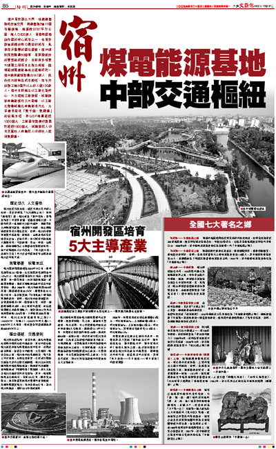 宿州是安徽北大門,地處蘇魯豫皖四省交界,與蘇魯豫3省11個市縣接壤,總面積9787平方公里,總人口620萬人,是淮海經濟協作區的核心城市之一,也是安徽省距離出海口最近的城市,具有得天獨厚的區位優勢。宿州煤炭預測儲量60億噸,是兩淮煤田的重要組成部分,目前有多項重大煤電工程項目正強力推進,億噸級煤電產業基地正逐漸成形。宿州擁有富餘勞動力147萬人,操作技巧純熟且成本較低,每年外出務工達3個月以上的人員130萬人。宿州目前確立以工業化為核心,大力實施工業擴張、城鎮擴容和農業提升三大戰略,以工業化帶動城鎮化和農業現代化,力爭盡早實現「雙千億、雙翻番」的發展目標,即GDP總量超過1000億元,工業固定資產投資累計超過1000億元,城鎮居民人均可支配收入和農民人均純收入實現雙翻番。