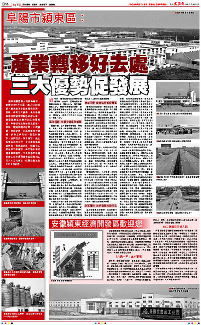潁東區隸屬皖北名城阜陽市,面積685平方公里,總人口60餘萬。潁東區充分發揮綜合交通、資源、政策三大優勢,著力構建區域性商貿物流配送的核心區、優質農產品生產和加工的集聚區、阜陽煤電化基地的主體區。同時,實施跨越式發展、比較優勢、東向發展、工業強區四大戰略,抓好工業突破、新農村建設、招商引資、項目建設、優化環境等五項工作,全力推進新城區開發、老城區改造、煤電化工綜合加工區建設、阜口路生態旅遊景觀帶建設、三角洲移民拆遷安置工程和振興路食品綜合加工等六大工程建設,促進經濟社會又好又快發展。
