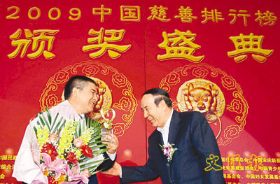 2008年獲得「中國首善」稱號後,捐款2.1億元的江蘇黃埔再生資源利用有限公司董事長陳光標,昨日又獲得2009中國慈善排行榜最高獎項—「最具號召力的中國慈善家」稱號。