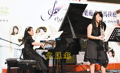 潘曉盈及傑出青少年音樂家大獎2008得主賀蓁(站立者)以鋼琴及單簧管合奏。