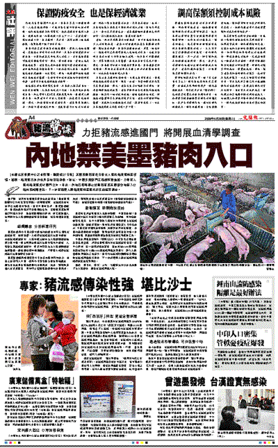 據悉,連日來,廣東、上海、江蘇等地的口岸也加強了出入境檢查,嚴防豬流感病毒入境。