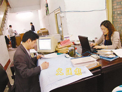 ■審計人員正在比照圖紙審核重建學校。本報記者羅洪嘯 攝