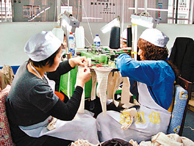 ■遼源經濟轉型後,傳統的工業紡織業煥發了青春。圖為襪業工人正在機器前忙碌。