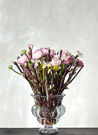 洋牡丹代表爽朗愉快,櫻花則寓意烹飪工作帶來的甜美,最適合用來感謝母親的辛勞。安插在Dampierre花瓶中,配上用磨砂水晶刻畫的8隻小鳥,更添歡樂的氣氛。(b)花瓶售價:$5,500